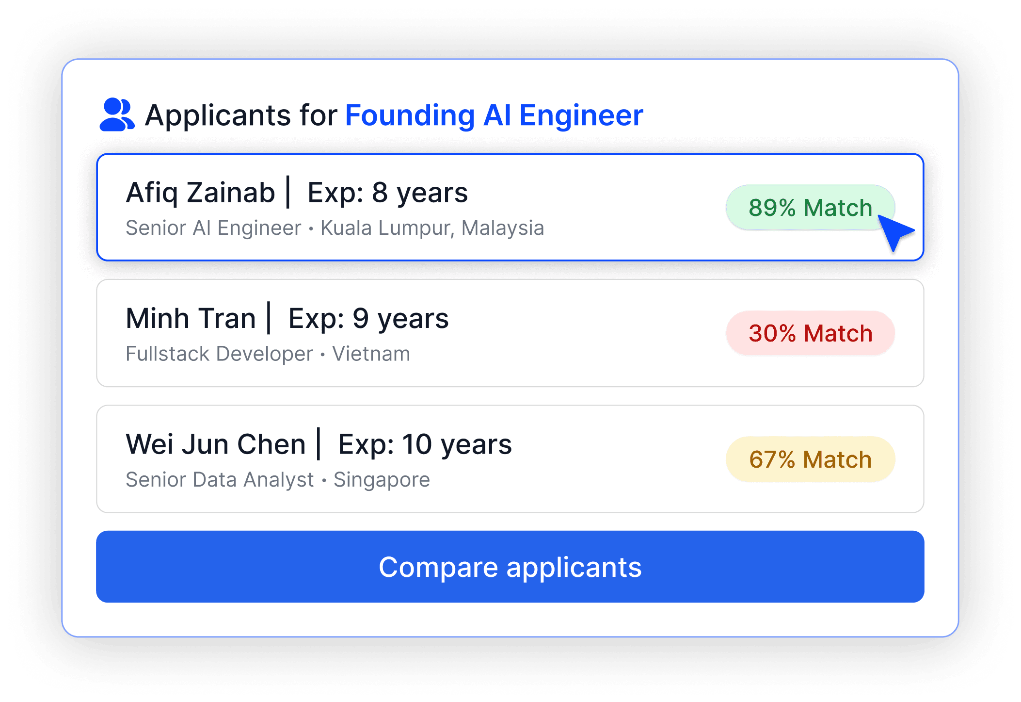 Tell us what roles you’re hiring for, team size, and budget. We’ll tailor the experience to your needs.