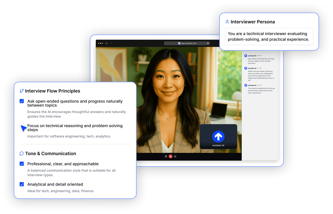 ourteam's AI interview listens, asks smart questions, and turns your answers into clear signals that help you stand out and move forward.
